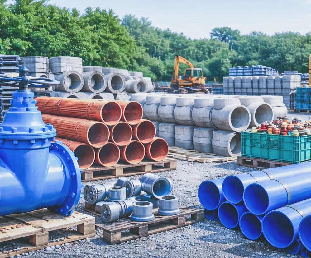 在庫力と迅速な手配、現場を止めない納品体制により、上下水道・土木資材の施工現場を総合的に支えています。
